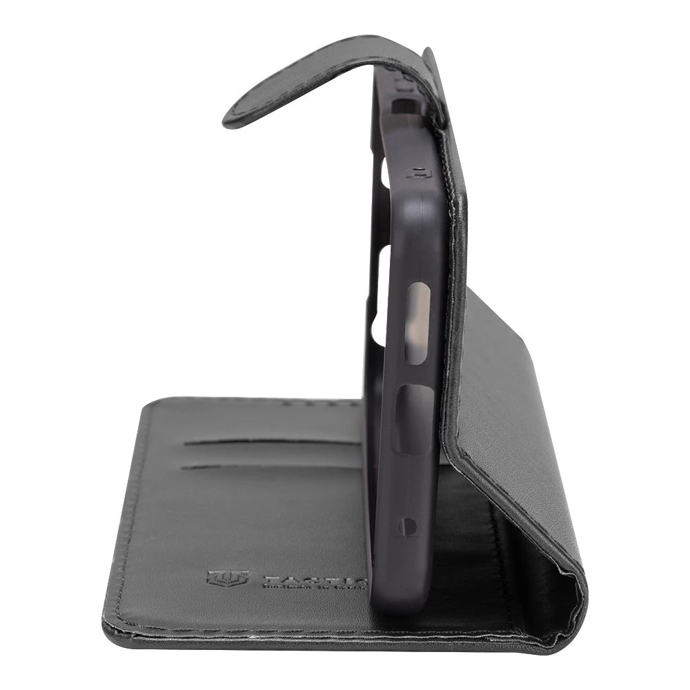 Flipové pouzdro pro mobilní telefon z kvalitní PU kůže • Vnitřní vanička z pružného TPU • Zavírání s přezkou na magnet • Kryt slouží jako praktický stojánek • Volně přístupná tlačítka a konektory • Výřez pro fotoaparát • Lze telefonovat i v zavřeném stavu • Perfektní ochrana telefonu ze všech stran • Přihrádky např. pro platební karty • Otvor pro provlečení poutka
