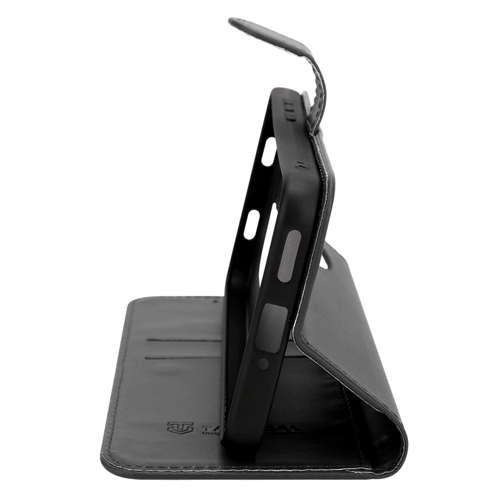 Flipové pouzdro pro mobilní telefon z kvalitní PU kůže • Vnitřní vanička z pružného TPU • Zavírání s přezkou na magnet • Kryt slouží jako praktický stojánek • Volně přístupná tlačítka a konektory • Výřez pro fotoaparát • Lze telefonovat i v zavřeném stavu • Perfektní ochrana telefonu ze všech stran • Přihrádky např. pro platební karty • Otvor pro provlečení poutka
