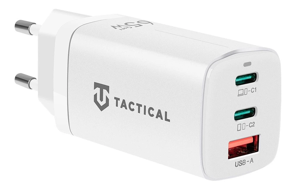 • Gallium Nitride, GaN Technologie, která poskytuje vysoký výkon a zároveň umožňuje zachovat velmi kompaktní rozměry nabíječky. Oproti ostatním nabíječkám má výhodu ve vyšší účinnosti, menších rozměrech a delší životnosti. • 65W Celkový výkon nabíječky 65W Ti zaručí, že můžeš nabíjet svůj MacBook, iPad nebo ostatní notebooky a tablety. Výkon 65W není sdílený. To znamená, že na jeden USB-C port utáhneš skutečně celých 65W a neudává jen součet všech portů.