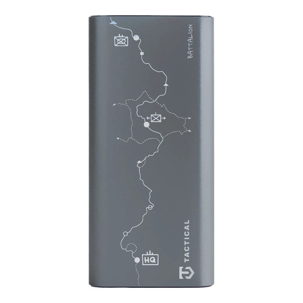 Powerbanka Tactical Squad Battalion o kapacitě 20000mAh • Rychlost dobíjení 65W • Vybaveno 2x USB-C a 1x USB-A • Integrovaný displej zobrazuje stav baterie a průběh nabíjení • Konstrukce z hliníkové slitiny • ECO balení z recyklovaného papíru