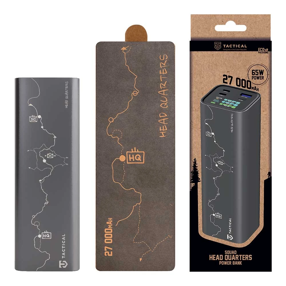 Powerbanka Tactical Squad Battalion o kapacitě 27000mAh • Rychlost dobíjení 65W • Vybaveno 2x USB-C a 1x USB-A • Integrovaný displej zobrazuje aktuální vstupní/výstupní výkon, stav baterie a průběh nabíjení • Konstrukce z hliníkové slitiny • ECO balení z recyklovaného papíru