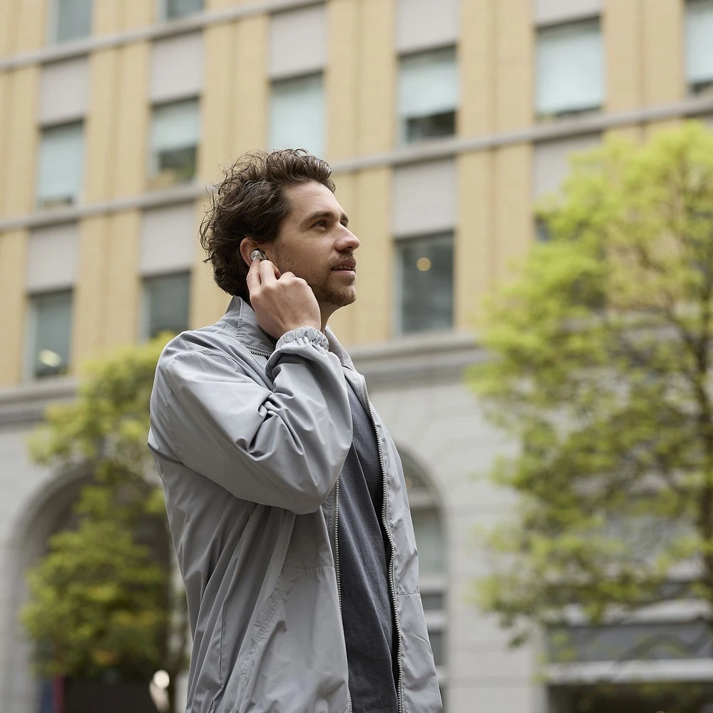 True Wireless sluchátka s technologií Bluetooth 5.3 • intraaurální konstrukce – špunty • 8mm reproduktory • špičková akustická komora • harmonizér • duální hybridní funkce ANC • LDAC • AAC • SBC • 8 individuálních JustMyVoice mikrofonů • transparentní režim • mód pozornosti • simultánní vícebodové párování (až 10 zařízení současně) • hlasoví asistenti • krytí IPX4 • prémiové nabíjecí pouzdro (podpora standardu Qi) • koncovky do uší v 7 velikostech • výdrž: až 25 h (s pouzdrem) • barva: stříbrná