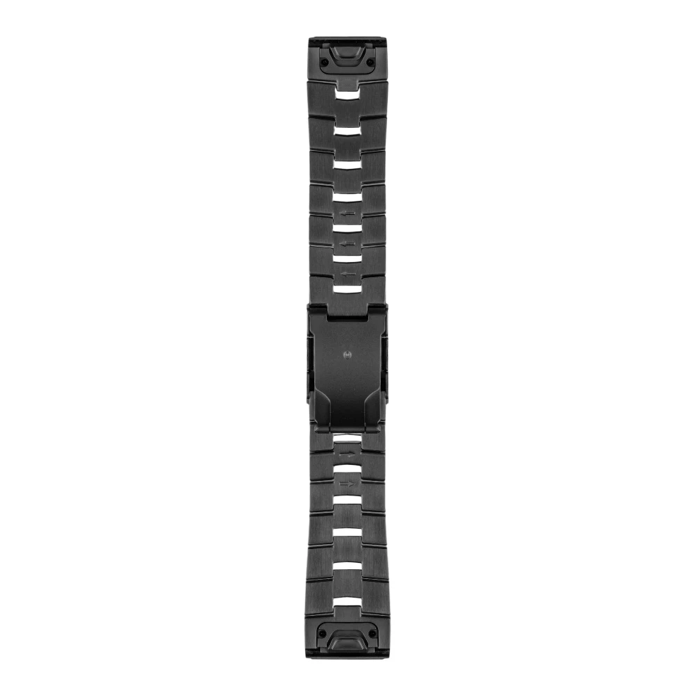 Titanový neoriginální řemínek pro Garmin hodinky • Upínací systém QuickFit • Šíře 22mm • Klasická překlápěcí přezka • Možnost zkrácení v domácích podmínkách • Uchycení článků pomocí osiček • Celková délka řemínku 190mm • Zapínací přezka vyrobená z ocele a zbytek řemínku vyroben ze slitiny titanu • Barva: černá