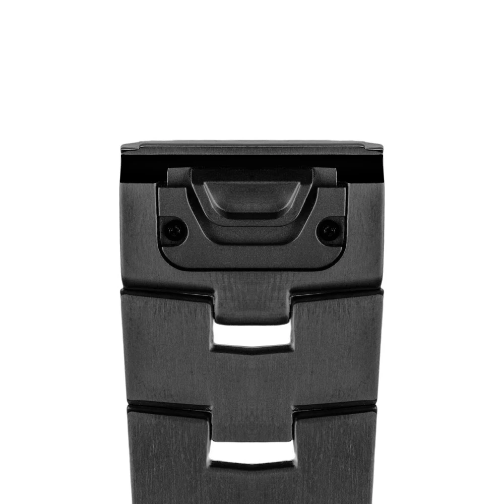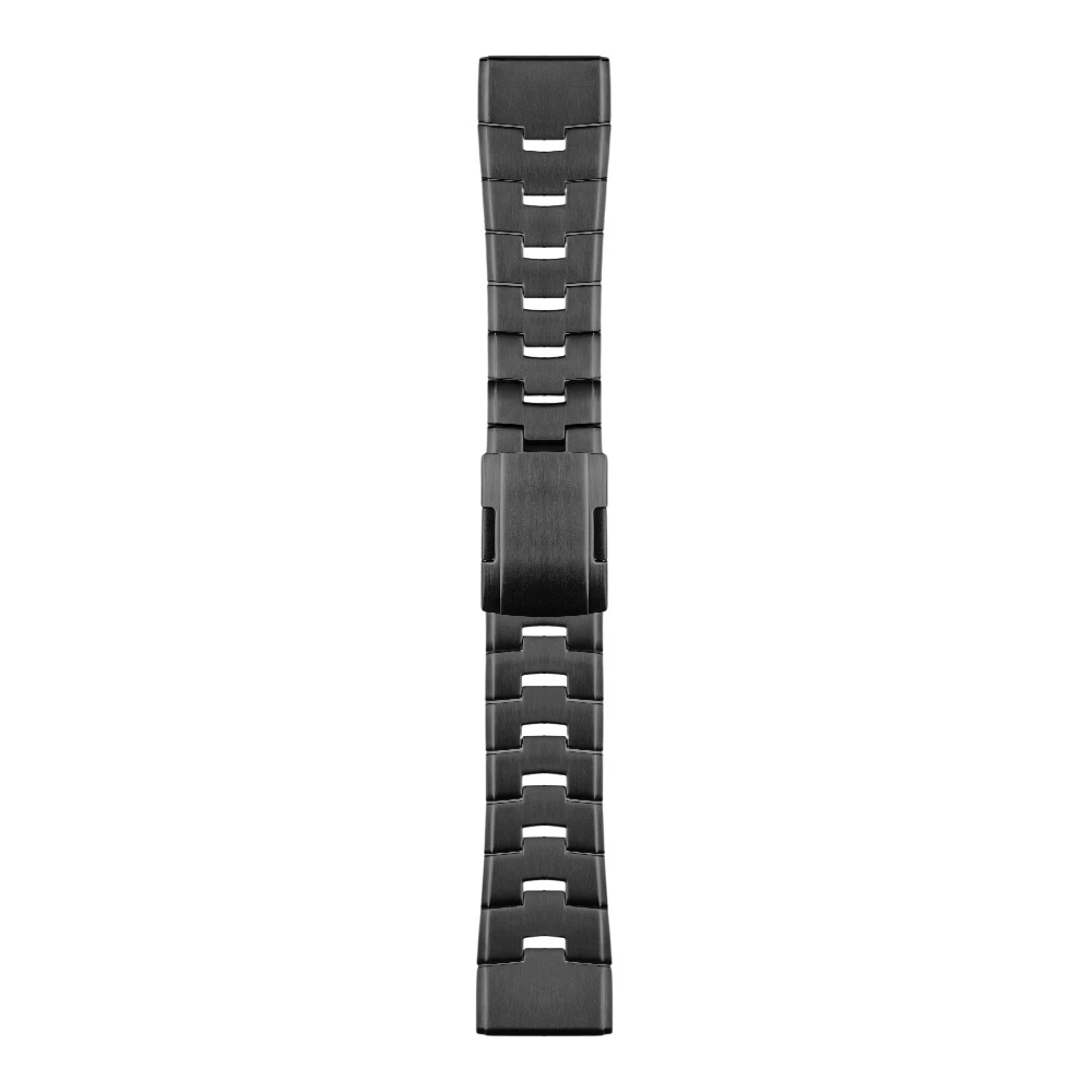 Titanový neoriginální řemínek pro Garmin hodinky • Upínací systém QuickFit • Šíře 26mm • Klasická překlápěcí přezka • Možnost zkrácení v domácích podmínkách • Uchycení článků pomocí osiček • Celková délka řemínku 190mm • Zapínací přezka vyrobená z ocele a zbytek řemínku vyroben ze slitiny titanu • Barva: černá