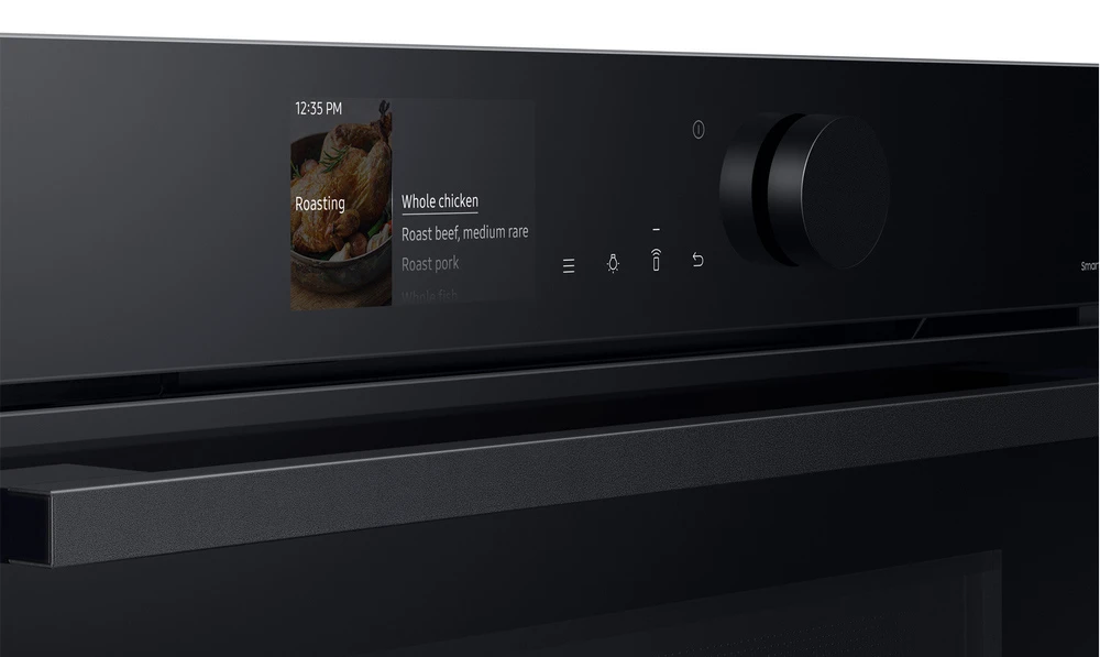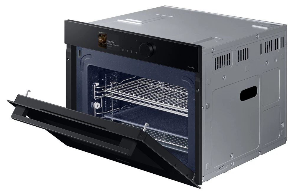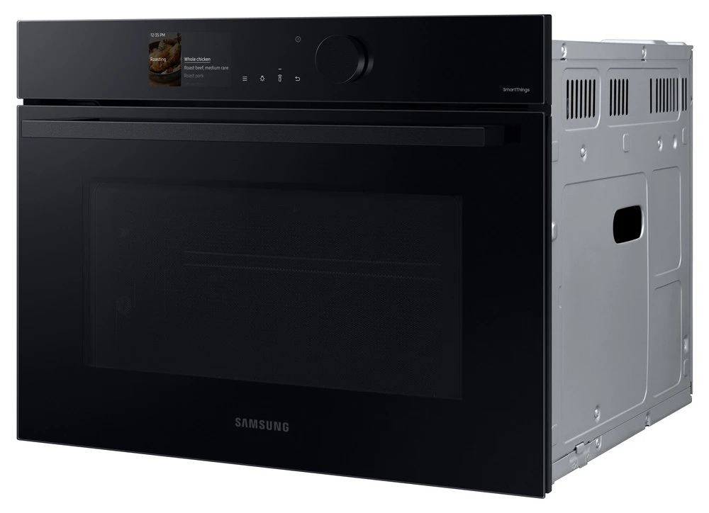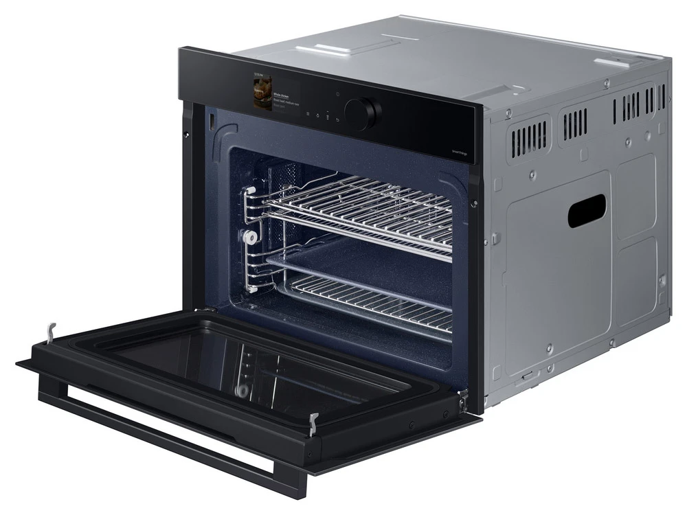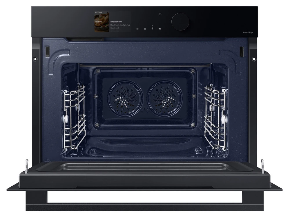 Vestavná kompaktní trouba s kapacitou 50 l • konvekce • horký vzduch • grill • mikrovlny • funkce míchání • max. výkon: 2 800 W • vnitřní povrch: keramický smalt • kombinovaný režim • automatické rozmrazování • funkce udržování teploty • časovač • vnitřní osvětlení • parní čištění • LCD displej • dotykové ovládání • dvířka z černého skla • dětská pojistka • keramický plech • čtvercový plech na pečení • čtvercový rošt • pečicí mřížka • AirFry Rack • Pro Steamer • Wi-Fi • SmartThings