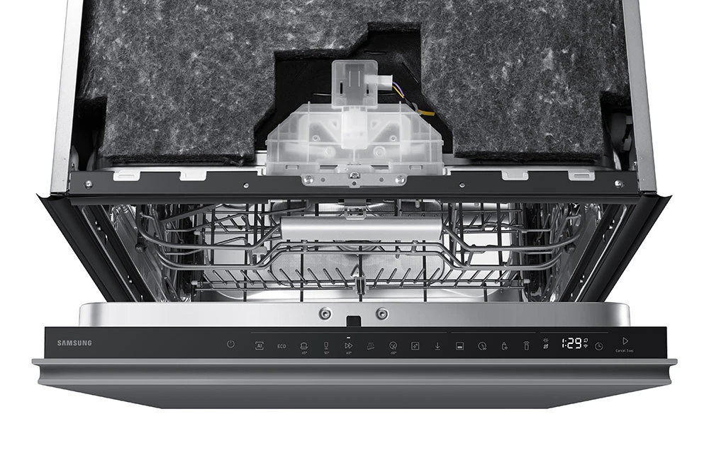 Vysoká energetická účinnost • Water Jet Clean dvojitá rotační ramena • Integrované Wi-Fi SmartThings • energetická třída A • Tichá 42dB(A) • Automatické otevírání dveří • Flexibilní prostor • Informační LED na podlahu • Aqua Stop • 14 sad nádobí