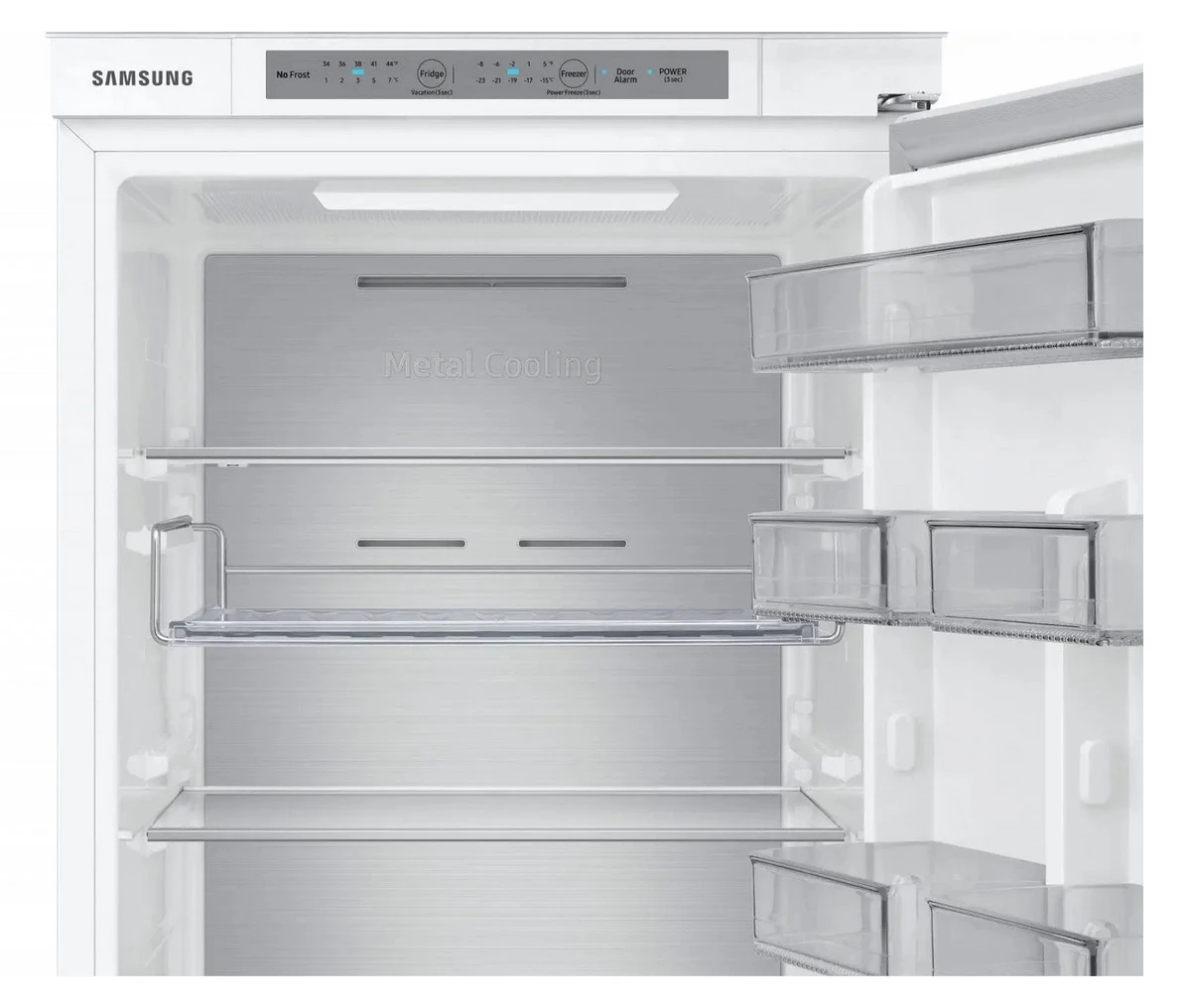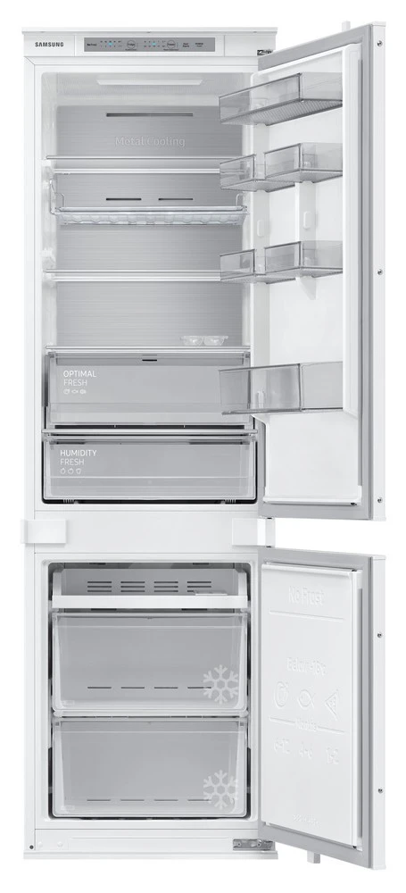 Vestavná chladnička s mrazákem dole Samsung BRB26705EWW - Výška 1864mm, Celkový objem 264 l, objem chladničky 190 l, objem mrazáku 74 l, Total No Frost, All Around Cooling, Metal Cooling, Rychlé chlazení, Energetická třída E