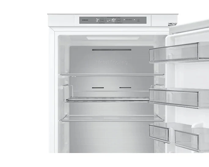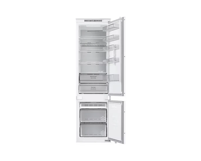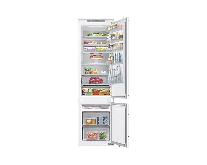 Vestavná chladnička • energetická třída E • kapacita 298 l (224 / 74) • technologie SpaceMax • nezávislé chlazení Twin Cooling • systém Metal cooling • funkce rychlé chlazení a mrazení • řešení No Frost • flexibilní zásuvka Cool Select+ v mrazničce • spotřeba 229 kWh/ročně • 35 dBA • režim dovolená • režim SmartThings AI Energy • Smart • Wifi • výška 193,5 cm • aplikace Samsung SmartThings