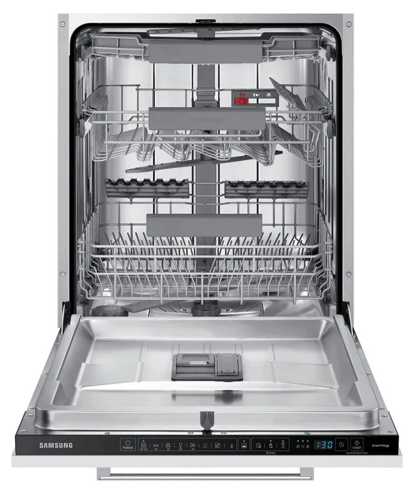 Vestavná myčka pro 14 sad nádobí • 8 programů včetně intenzivního či extra tichého • horní zásuvka s nastavitelnou výškou a skládacími přihrádkami • spodní zásuvka se sklopnými přihrádkami • přizpůsobitelná kovová zásuvka • koš na příbory • odložený start • informační světlo • funkce dezinfekce • sušení automatickým otevřením dvířek • zámek • Speed Booster • nerezový interiér • dotykové ovládání • Wi-Fi • Aqua stop • en. třída B • hlučnost: 40 dB • rozměry: 81,5 × 59,8 × 55 cm (v × š × h)
