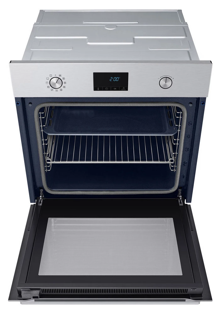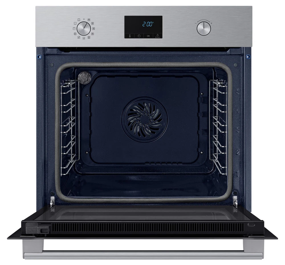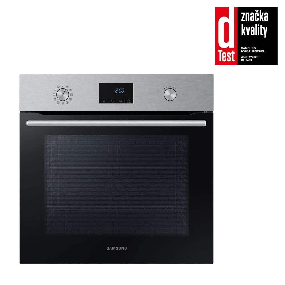 Vestavná trouba Samsung NV68A1170BS/OL s pyrolytickým čištěním, které rozpálí troubu na 500°C a poté jednoduše setřete jen prach z vypálených nečistot • prémiový ohřev True Convection • Velká kapacita 68 l • Over Voltage Protection • 1× rošt • 1× čtvercový plech • keramický smalt