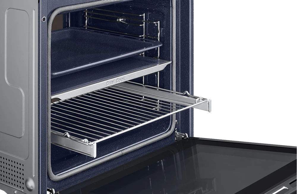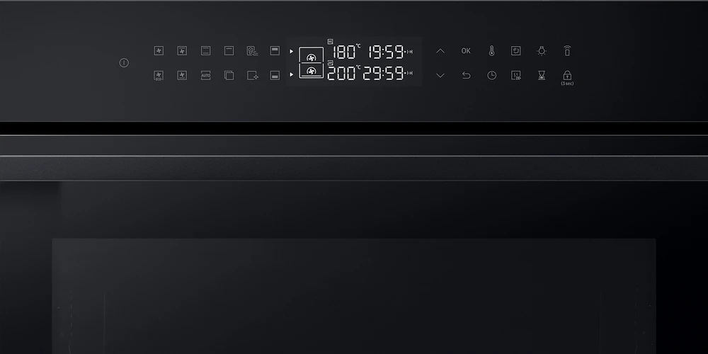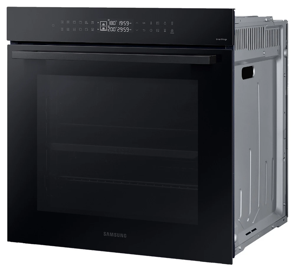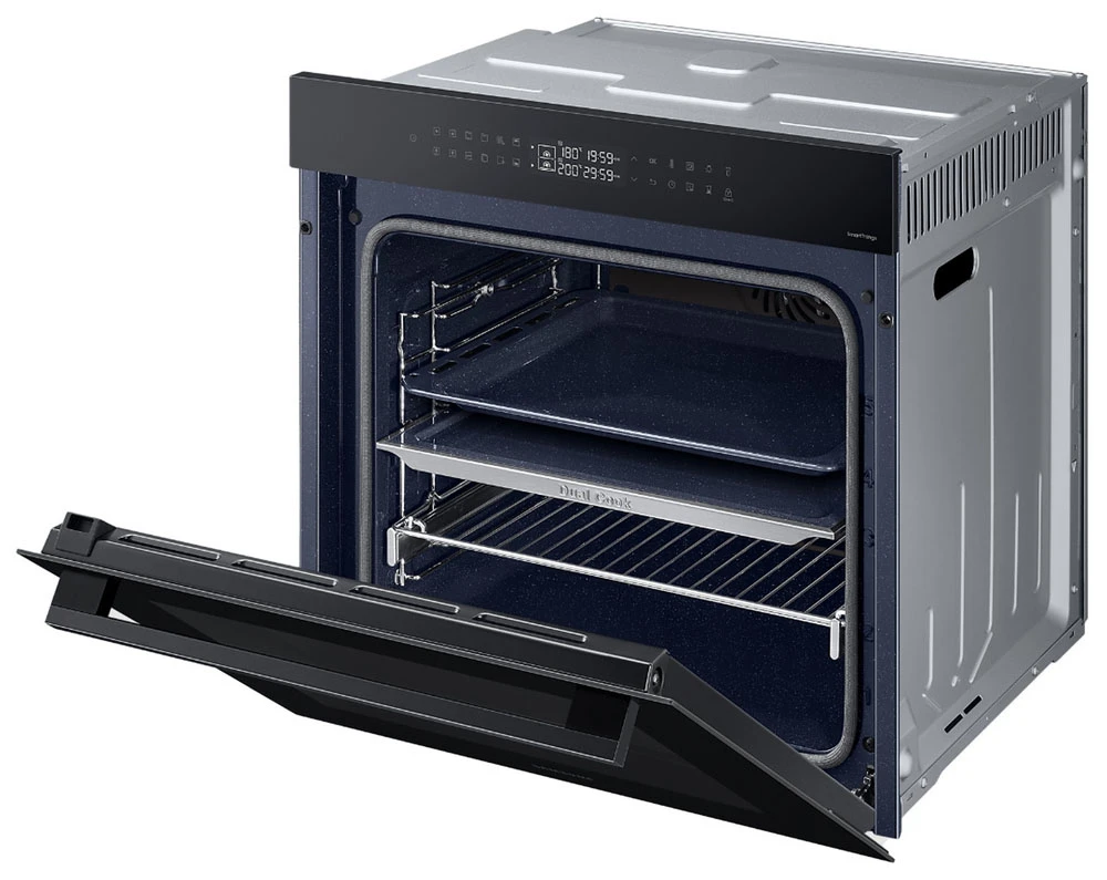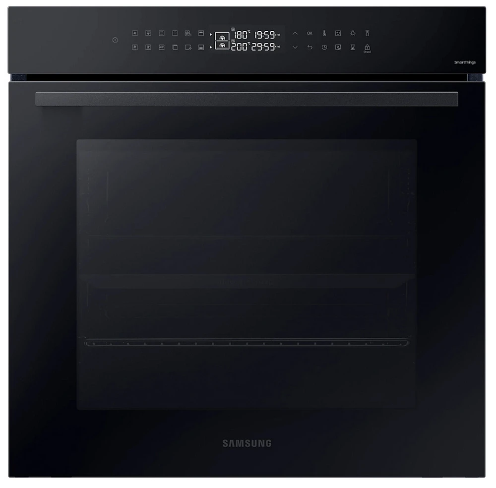 Vestavná trouba Dual Cook • en. třída A+ • kapacita 76 l • spodní & horní ohřev • gril • Natural Steam – vaření v páře • systém Air Sous Vide • SmartThings Cooking • parní & katalytické čištění • obrovské množství aut. programů • LED displej • časovač • dětská pojistka • vnitřní osvětlení • dvojité dveřní sklo • Wi-Fi • výběr jazyka • teleskopická lišta • bohaté příslušenství • barva: černý nerez • rozměry: 59,6 × 59,5 × 57 cm (v × š × h)