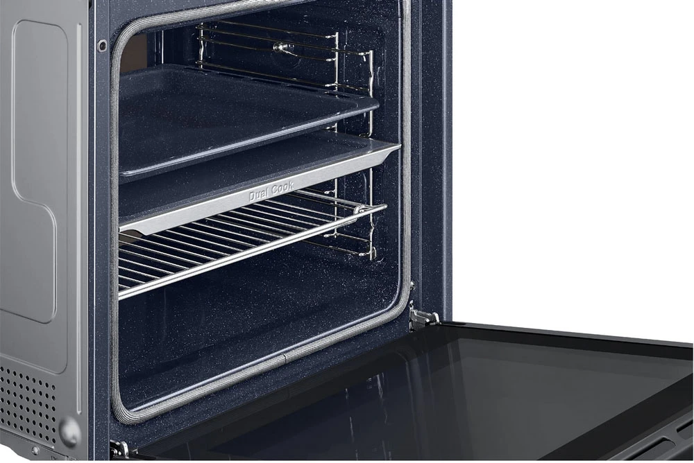 Vestavná trouba Dual Cook • en. třída A+ • kapacita 76 l • spodní & horní ohřev • gril • Natural Steam – vaření v páře • systém Air Sous Vide • SmartThings Cooking • parní & katalytické čištění • obrovské množství aut. programů • LED displej • časovač • dětská pojistka • vnitřní osvětlení • dvojité dveřní sklo • Wi-Fi • výběr jazyka • bohaté příslušenství • barva: černý nerez • rozměry: 59,6 × 59,5 × 57 cm (v × š × h)