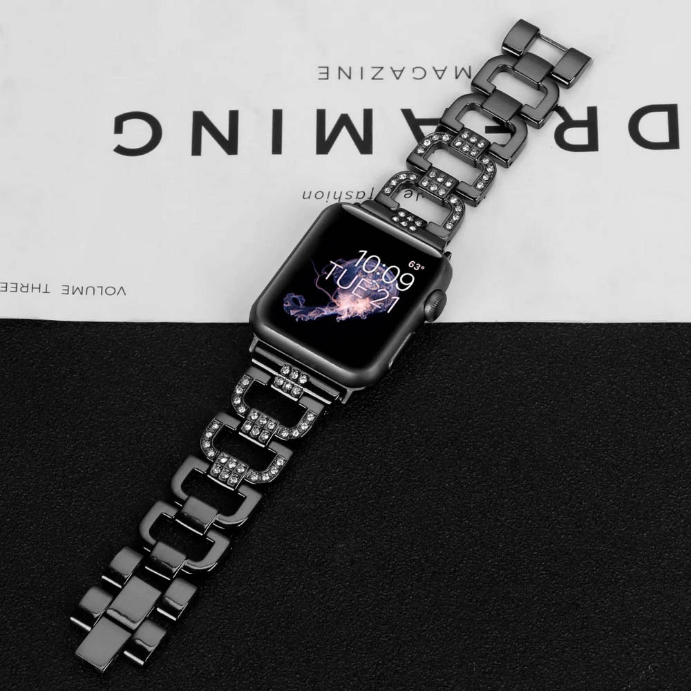 • Vyjádřete styl s tímto vysoce kvalitním řemínkem pro iWatch z nerezové oceli, který je osazený kamínky. Určitě přitáhne spoustu pozornosti a komplimentů a vydrží vám hodně dlouho. • Tento náramek je navržen s klenotovou sponou, u které lze snadno upravit délku podle velikosti zápěstí. Velikost pásku můžete změnit odstraněním skládací spony bez použití nástrojů. Řemínek má 4 odnímatelné skládací spony pro snadné nastavení, je lehký a odolný. • Velikost řemínku pro Apple Watch 38mm/40mm/41mm