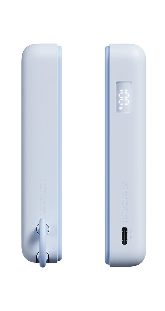 Velkokapacitní powerbanka Xiaomi disponuje 10000mAh • Výkon drátového nabíjení je 33 W a při bezkabelovém nabíjení získáte až 15 W • USB-C port, který slouží jako vstup i výstup • Integrovaný kabel USB-C • Digitální displej zobrazuje úroveň nabití baterie a indikátory nabíjení a poruchy • Nastavitelný stojánek • Silný magnet • Víceúrovňová ochrana • Hmotnost je 229 • Barva: modrá