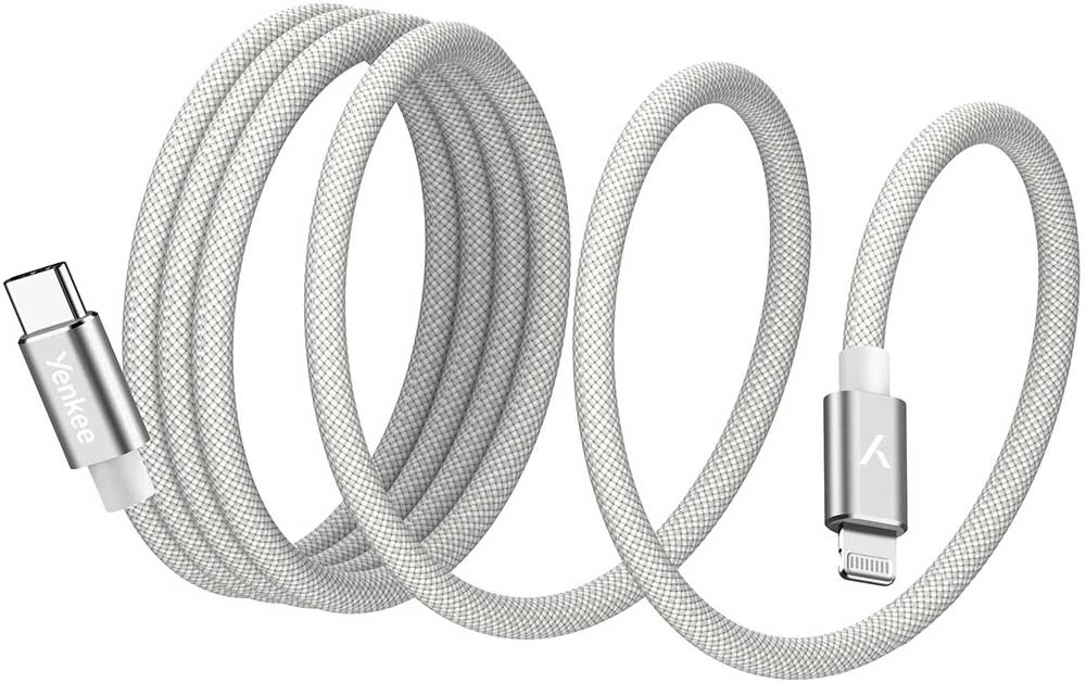 Magnetický kabel C/L Yenkee • konektory USB-C na Lightning • nylonový kabel s hliníkovým konektorem • zabudované magnety • nabíjecí proud: 9V/3A • výkon: až 27W • přenos dat: 480Mb/s • délka: 1,5 m • certifikace Apple MFi • barva: bílá