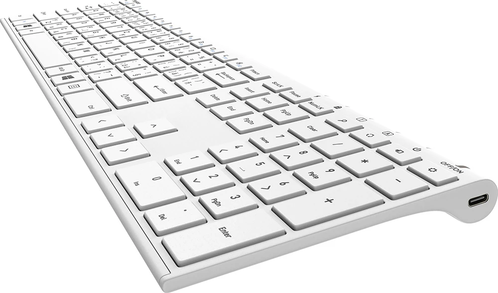 Bezdrátová dobíjecí klávesnice TRIM • dobíjecí baterie a automatické vypnutí • nízký profil a tiché „scissor“ spínače • klávesnice plné velikosti a multimediální klávesy • 2,4GHz bezdrátové připojení • provozní dosah až 10 m • tenké a elegantní tělo vyrobené z prémiových materiálů • baterie podporuje až 90 hodin • LED indikaci nízkého nabití • nabíjecí micro USB kabel je součástí příslušenství • kompatibilita: Windows 7 / 8 / 10 / 11; Mac OS X • barva: bílá