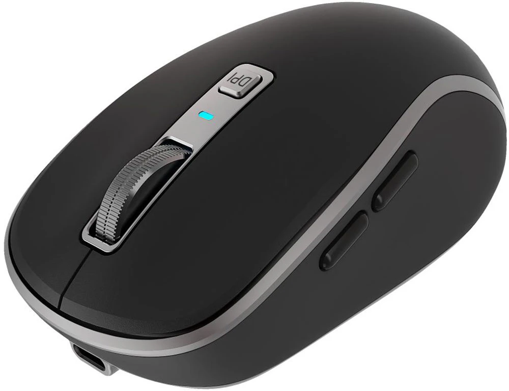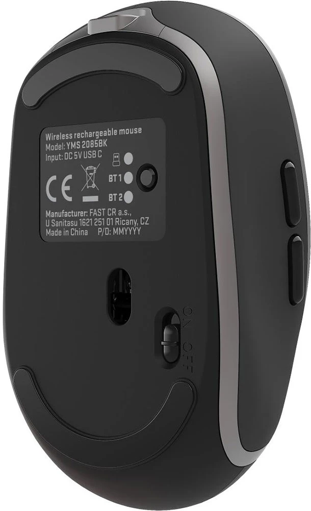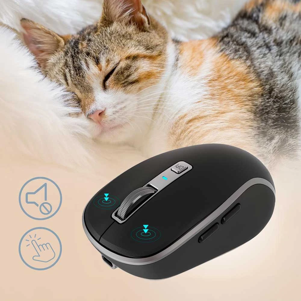 Bezdrátová dobíjecí myš NOBLE • rozlišení 800/1200/1600 DPI • vestavěná dobíjecí 500mAh baterie • tři bezdrátová řešení připojení - standardní připojení 2,4 G s USB klíčem a dvěma připojeními Bluetooth označenými jako BT1 a BT2 (podporuje starší verze 3.0 a novější verze 5.0, která je plně zpětně kompatibilní) • tiché přepínače • přesné kovové rolovací kolečko • barva: černá