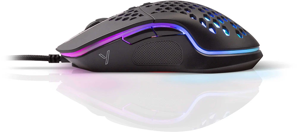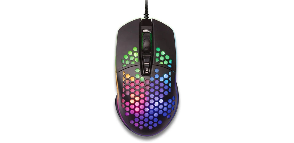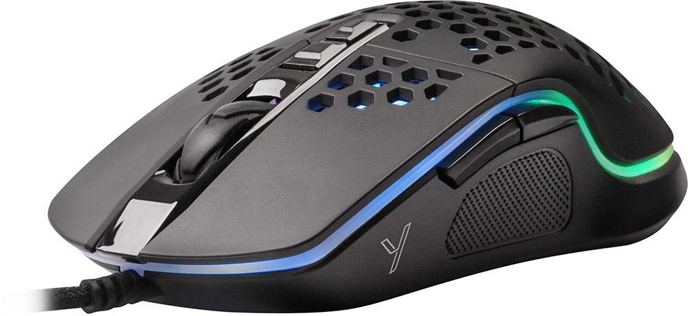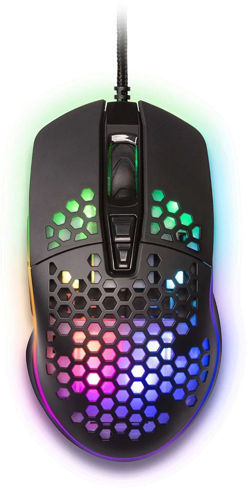 Ultralehká programovatelná herní myš SHOTGUN • spolehlivý a přesný 6400 DPI senzor • 7 tlačítek • USB • ultra lehká a perforovaná konstrukce • programovatelná tlačítka • RGB podsvícení s efekty • spínače Huano • RGB podsvícení • délka kabelu: 170 cm • hmotnost jen 75 g • barva: černá